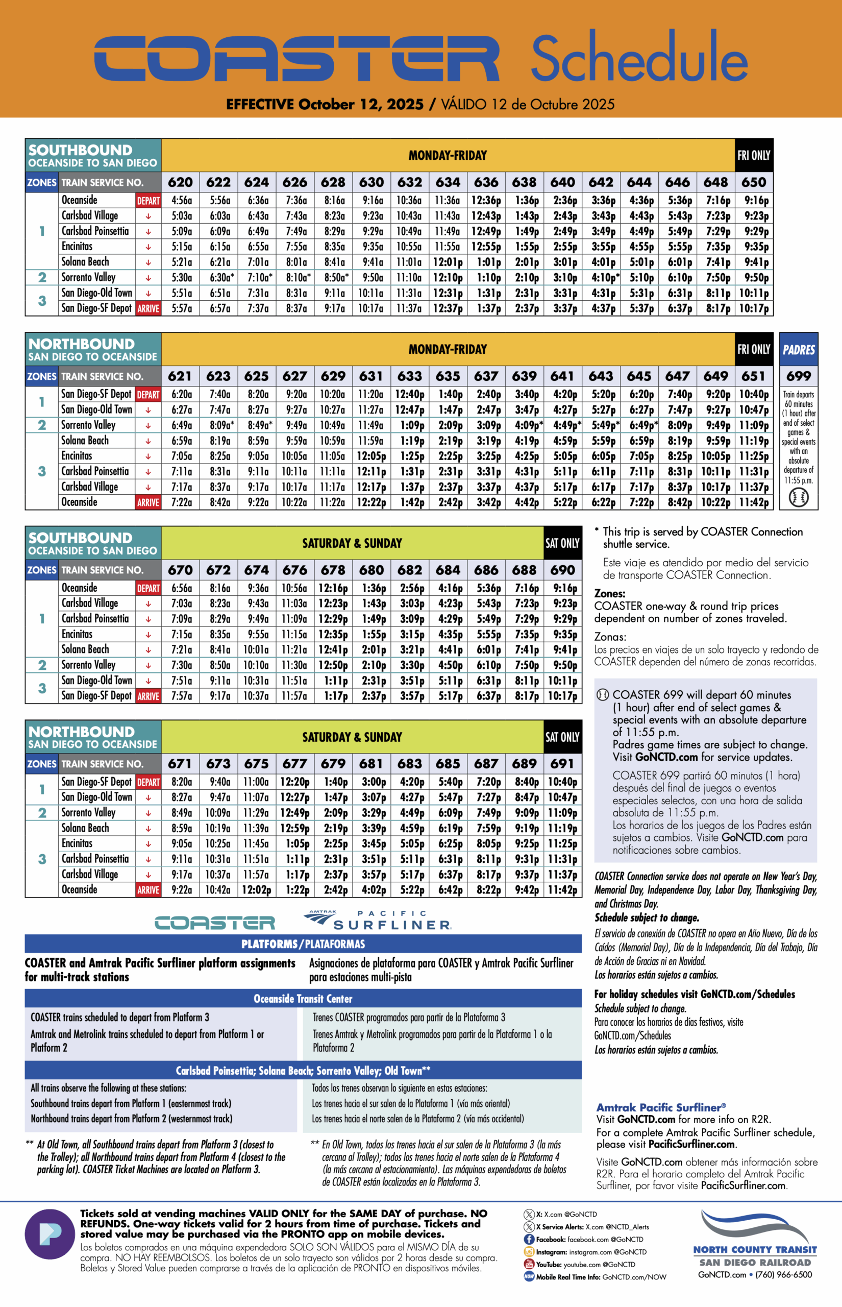 Plan your trip ahead! Starting October 12, 2025, NCTD will provide you with NEW times for the COASTER. To view the most up-to-date COASTER schedule please click here or click on the Blue COASTER Schedule button below.